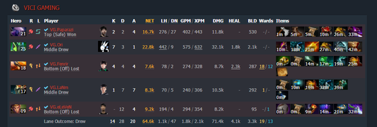 第二轮的BO3中,VG在败者组遇到了东南亚霸主Mineski,面对老队友Mushi和三冰,国土并没有发挥出他的“智将”本色,反倒是BP还有一种被爆的感觉。第一局拿出的大鱼人在当前版本中几乎没有战队使用,无数的空踩不说,好容易踩中一脚准备游走的时候还被干扰者直接D了回来当场送命。这场比赛中三冰展现出了他作为前星际选手的实力,死灵龙使用起来也是出神入化,两只小鸟起到的控制效果经常比老十一的潮汐还要有用。