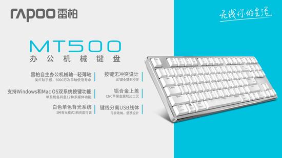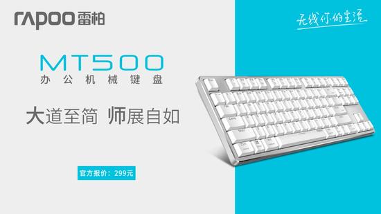 生来自带主角光环,用轻薄机械驱动所有。299元捍卫职场真我态度。雷柏MT500办公背光机械键盘,智大雅,轻触感。隐锋芒,自辉昂。