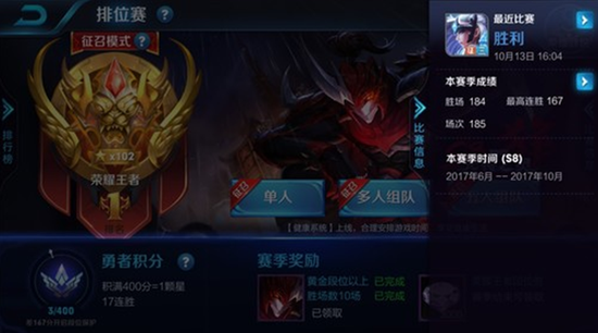 《王者荣耀》这个S8赛季的末期,因为触手直播人气主播小月亮的“捣乱”,变得异常精彩!照以往剧本,赛季末期一般的步骤是,各个有实力的主播,纷纷打上荣耀王者百星,以证明自己大师级别的实力。但是这个赛季,小月亮却冷不丁冒出来搞了个大事情——167连胜破了天美最高连胜纪录,185盘打上了荣耀王者102星破了最少盘数上百星纪录。