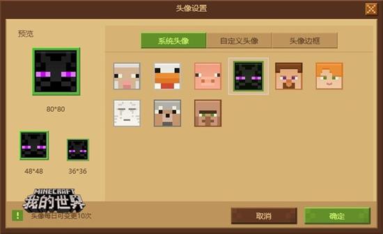 各位冒险家们是不是已经厌倦了左下角的默认史蒂夫头像了呢?现在,自定义头像功能来了,大家点击启动器好友列表上的头像就可以进入头像设置界面,更新后,除了史蒂夫的头像,还新增了许多《我的世界》元素的头像,各位冒险家可以自由选择默认的《我的世界》元素头像,也可以选择只属于你自己的自定义头像。另外,头像边框也已经加入。