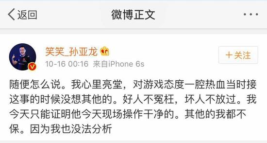 事后,笑笑在微博中称,可以确认油条今晚没有开挂。至于之前的腰射是否开挂,我们仍需要等一波官方验号后回复。