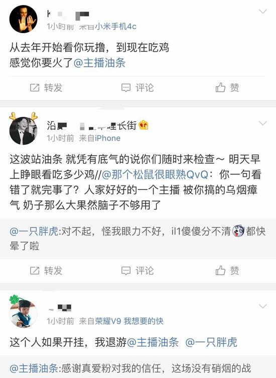 面对有网友质疑其48小时直播中的腰射、扫车等操作,油条也在笑笑等人的监测下,登录直播中使用的几个小号,确认小号没有被封。油条还坚定地称,接受官方对这几个小号的检测,如果官方证明这几个号没有开挂,请污蔑的喷子道歉。