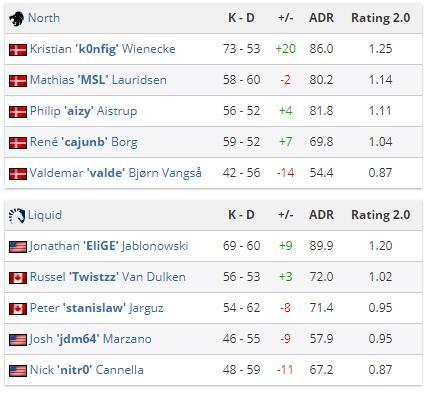 虽然经过如此努力仍没有将比赛带入加时赛,North没有受到这场比赛的影响,在Mirage上打出了凶猛的攻势,半场取得12分,下半场Liquid一度打出6-1的高潮,但North还是以16-11取胜。