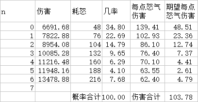 2.1伤害468+2424+1514.4=4406.40,耗怒48,每点怒气91.80伤害。预期伤害785.88,总计5192.28,每点怒气108.19伤害。
