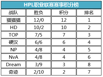 竞技奇迹!HPL职业联赛第六周:猫猫猫大胜HD,逆天12连胜!