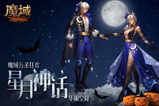 万圣将近百鬼夜行,没有一身拿得出手的行头自然是不行。《魔域》为玩家推出了最新万圣节主题新品时装,炫耀夺目的“星月神话”——优雅华丽,宛若星夜中皎洁的明月,让人沉醉。“星月神话?男款”上衣以高贵黑为主,星辰与皎月点缀其间,霸道总裁气息浓郁,“星月神话?女款”上衣则是一款华丽的轻纱,远看就像华丽的月光披在身上,深蓝色长裙盛开着漫天星星,悄声诉说星月的传奇。