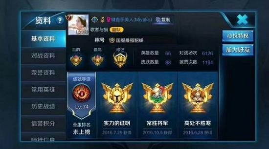 姐来展示一下高端操作,键盘手美人miyako拿下国服最强貂蝉称号,几个成就的取得时间,让现在多数的男生高手也自诩不如。王者助手数据显示,miyako总共打了7461场次,其中mvp多达3653个,这个mvp率不要太强,果然是带飞全场的中单。