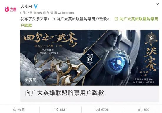 当然,diss 大麦网并不是我们关注的议题,这次的票务乱象,本质上属于包括大麦网、英雄联盟官方在内的赛事运营方对 S7 总决赛影响力的认知不足。