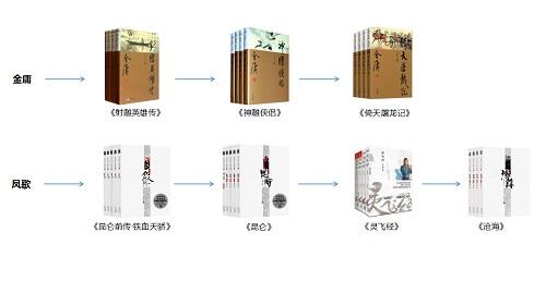凤歌先生以《昆仑》为起点,后续创作推出“山海经”系列4部作品,《昆仑前传:铁血天骄》、《昆仑》、《沧海》、《灵飞经》,豆瓣评分多在8.5分以上。而相关版权已被豆角映像、欢瑞世纪、慈文传媒采购收入,同步开发电视剧。《昆仑》系列有望在未来5年内密集推出4部热播电视剧。系列剧制作阵容非常强大,例如欢瑞影视邀请了著名编剧温豪杰、豆角影视邀请了著名导演钟少雄执导、并拟定国内最一线的当红演员担纲主演。