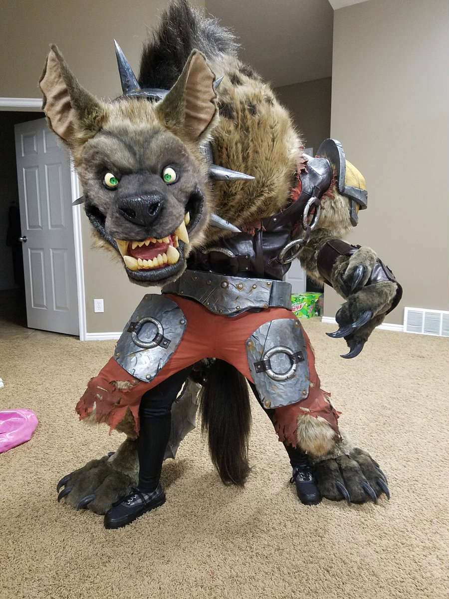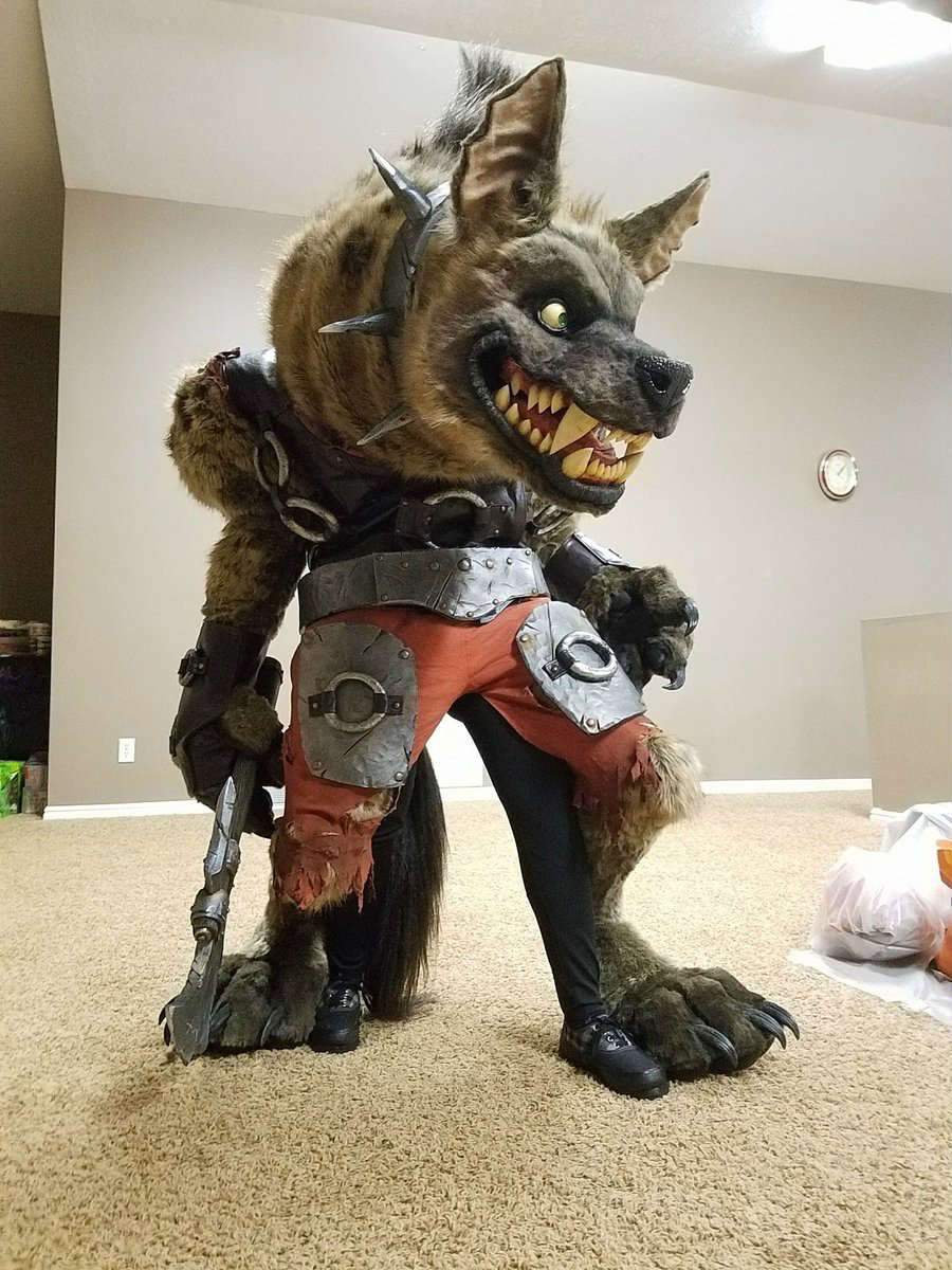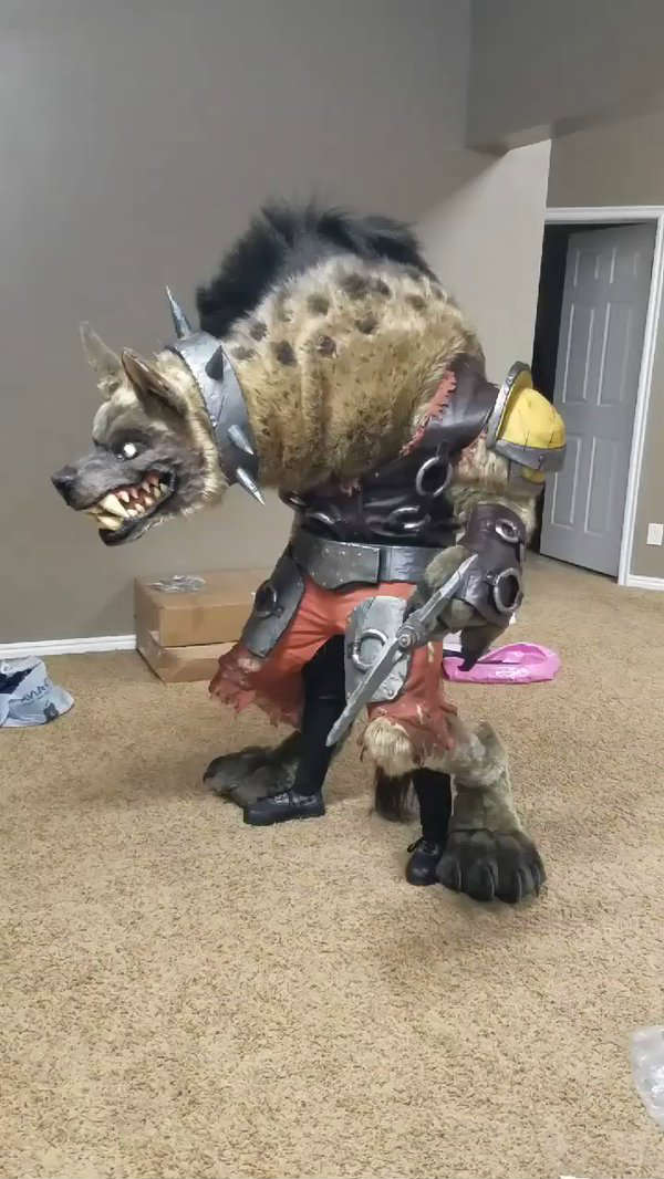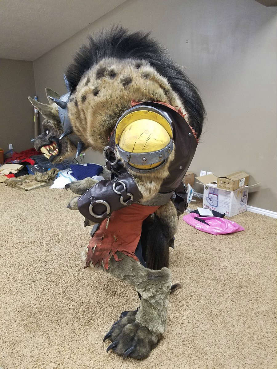 国外玩家Hogger打造的实体版霍格,然而这并不是玩偶,而是一人高的COS外套,人可以站在里面,披着这身皮随意行动。