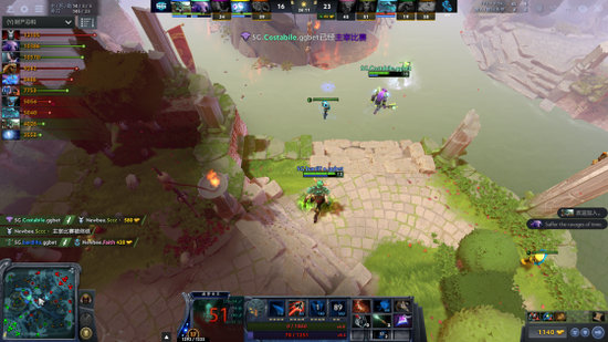 20分钟冥魂大帝拿到辉耀并击杀初代肉山,Newbee应该一系列的带线牵制三核经济慢慢有所起色。面对一波SG强势高Newbee选择避战互拆,各破一座高地防御塔后再次进入互刷阶段。32分钟二代肉山刷新,SG带盾带奶在率先击杀先知后顺势上高。Newbee见识果断让先知买活,拆掉SG两路高地,可没料到SG直接拆基地。只能说该来的始终要来,这回Newbee不得不正面团战硬刚。SG带盾带奶双核团战中相当的坚挺,最终伴随着白虎超神杀戮三度暴走拿下首局比赛的胜利。