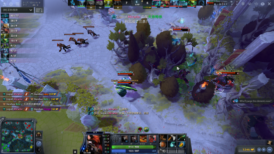 随后围绕中路一塔再次开团Newbee再败,这两波过后Miracle开始了他的“表演”。单带线各种被抓,头硬式开团破雾不走强一人后头就是干,连续的团战溃败让拉席克血精石能力叠了起来。25分钟Newbee再次抓住机会GANK毒龙后顺势收掉不朽盾,此时狂战-暗灭-BKB在手的幻刺任你带盾,团战还没开打就瞬间打掉了拉席克的不朽盾,待拉席克起身双方正式开团,幻刺开启BKB轻松拿下疯狂杀戮。