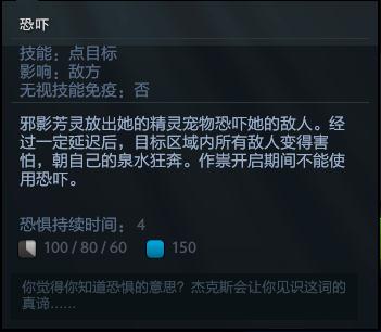 在受到恐惧效果时,敌方单位的移动方向一定是敌方的泉水方向,所以不能通过施放技能的角度等影响敌方的移动方向。在恐惧状态下的敌方单位仍会因为其他技能被控制,所以队友仍然可以补上其他控制,完成一次完美的歼灭战。
