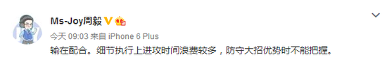 Ms-Joy:输在配合。细节执行上进攻时间浪费较多,防守大招优势时不能把握。