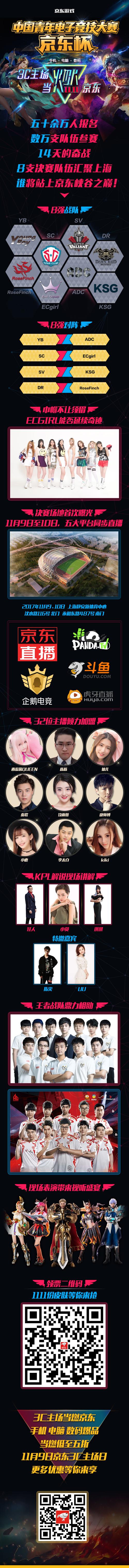 11月10日,本次中国青年电子竞技大赛京东杯的冠军即将诞生,万众瞩目,拭目以待。决赛当天将邀请到2017KPL春季赛、王者荣耀冠军杯双料冠军QGhappy及AG超玩会等职业战队来到现场与总决赛队伍互动。而解说作为王者荣耀赛事中的灵魂人物,起着至关重要的作用,主办方京东3C文旅事业部为本次赛事邀请到了KPL解说狂人、琪琪、小葵及知名解说UU、前eStar中单指尖加入,为所有“农药”爱好者们呈现一场游戏盛宴。