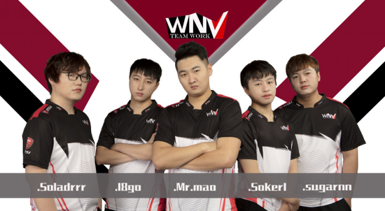 夺冠阵容(左起):wNv.sakula(吴润波) wNv.44‘alex(卞正伟) wNv.Jungle(杨克非) wNv.tk(马性驹) wNv.mikk(蒲江)