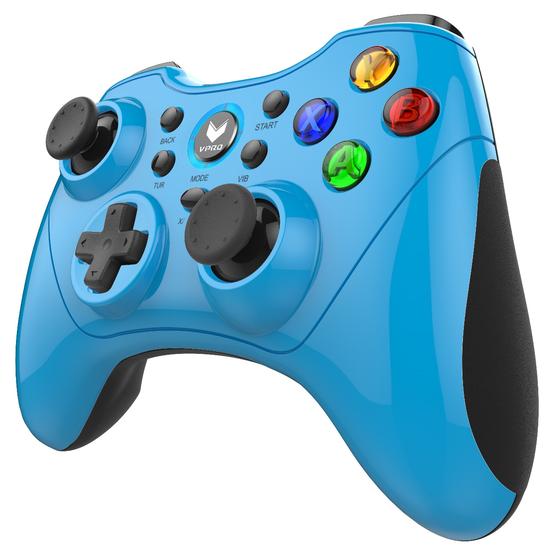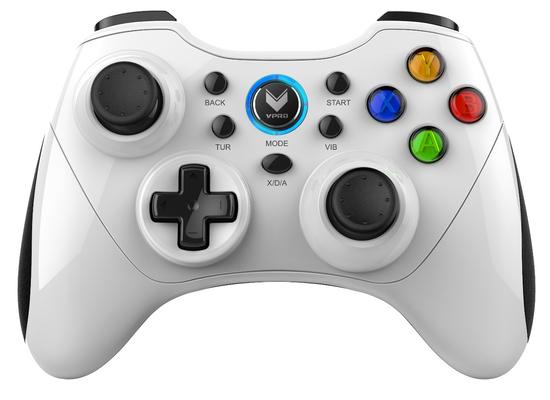双面彩质,无可挑剔。传承前代之魂,保留其独特的双面材质,双重质感。超跑镜面上盖与硬派磨砂底盖相得益彰,一面吸睛感染,一面舒适握感,真正地做到了全面兼顾。黑、白、红、黄、蓝,齐聚五彩超跑,就要与众不同。正中央的金属磨砂V系列专属VPRO键,周围散发霜冻之蓝光的LED灯,配上ABXY立体晶透键帽,质感出众,大气方成。