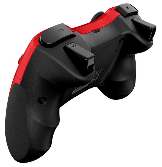 手柄握把左右两侧都加入了全尺寸磨砂纹防滑软胶,1:1贴附手掌心;考虑到了玩家相对较宽的中指和相对纤细的无名指及小拇指,背面两侧握把黄金比例分割的3段流线波纹指位槽,双重防滑效果,。
