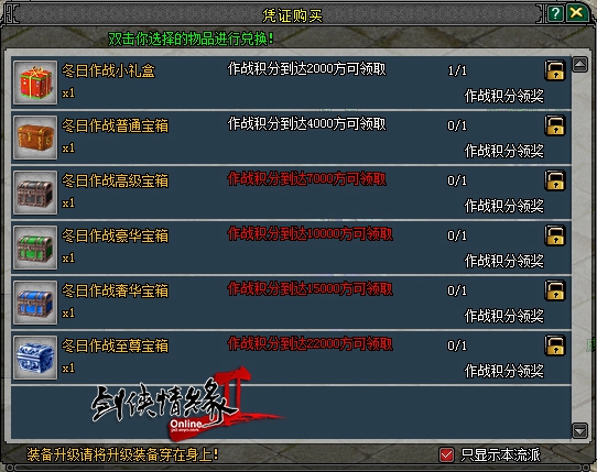 活动期间,侠士们参与指定的关卡、副本或者任务,均可获得冬日作战积分,积分累计到一定数值,可以用来领取阶段奖励,每个阶段的奖励只可以领取一次,也可以用来参与活动排名,领取最终奖励。