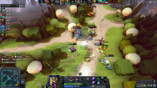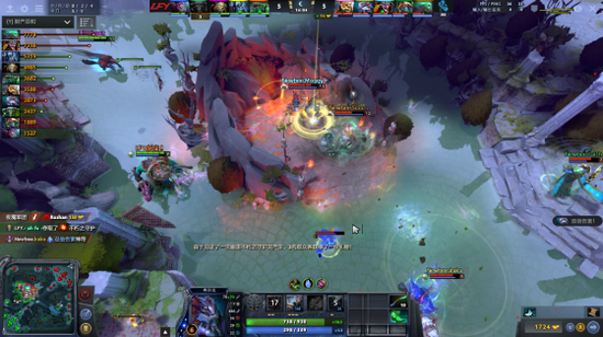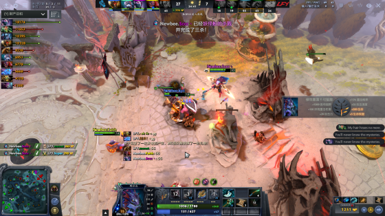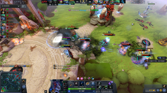 首局比赛Newbee拿出三核发育阵容,LFY则是圣堂跟飞机双核阵地推进阵容。开局双方一级十人团战互换一血后,Newbee在分路上取得优势,包爷中路的圣堂被Newbee中路三人打的非常不爽,下路伐木机对线潮汐同样是优势对线。不过随着LFY这边英雄等级的提升,尤其是神谕者到达6级之后超强救人能力,Newbee的势头慢慢被打压下来。