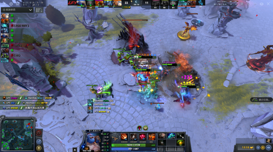 22分钟运送美杜莎冰眼的信使被Newbee逮个正着儿,本身经济落后,再加上信使被击杀对于LFY是雪上加霜。Newbee自然不会放过这种机会,一波冲高地直接带走LFY强势扳回一局。