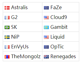 *目前还不确定是否会因为Renegades的加入而重新分组。