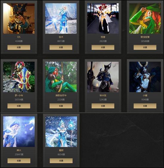 COSPLAY文化是DOTA2周边文化中的一个重要组成部分,热爱DOTA2的COSER自发的COSPLAY表演为DOTA2增添了一抹抹亮色。国外的COSPLAY作品常令玩家惊艳,TI上的COSPLAY大赛更是吸引眼球,此次的完美盛典上,我们也将邀请在之前投稿中通过初选的COSER来到完美盛典现场,COSPLAY嘉年华将在完美盛典上举行。在DS、苍术、怪兽、默浅笙箫、梦~小布、清歌染芳华、铁木弦、小腐、烨火和楊哲几位COSER的作品中,玩家最喜爱的是哪一组呢?期待玩家的投票!