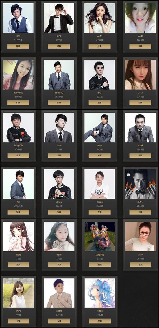 参选名单:-ah fu-、Agressif、AME、bLink`、BoBoKa、BurNIng、DDC、dogfights、Faith、Faith_bian、Fenrir、Freeze、fy、iceice、Injuly、Jixing、kaka、Kpii、Lpc、Monet、Moogy、Op、Paparazi灬、Q、rOtk、Sakata、Sccc`、Shadow、Somnus丶M、super、Super、Victoria、White、Xxs、YAO、YoUnG eLeVeN、y`、剑来!