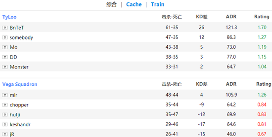 图二来到了Train,先做进攻的Vega手枪局进攻内场放下C4,TYLOO回防成功吃下手枪及经济局。第三局TYLOO的三人绿通非常规前压却被Vega成功化解,比分来到了2:1的同时也将TYLOO打入了ECO局。从第五局开始大哥BeTeT就展开了SHOWTIME,在A包点先收一人后随即内场回防三杀成功拆包。第六局内场ACE成功吃下Vega的经济局。此刻他的神奇发挥也成功带动了TYLOO全队,场上的比分也来到了6:2。此后Vega依旧采取快攻战术,拿回三分后拉平了TYLOO的经济。第14局somebody在A包点神奇发挥为TYLOO赢得了机会,在内场较量中BnTeT混烟打死了Vega的最后一人帮助TYLOO纯经济局翻盘成功。在半场结束后BnTeT的Frag已经达到了恐怖的27-5!