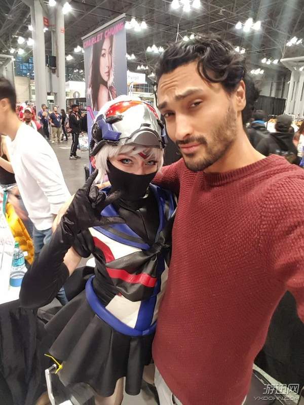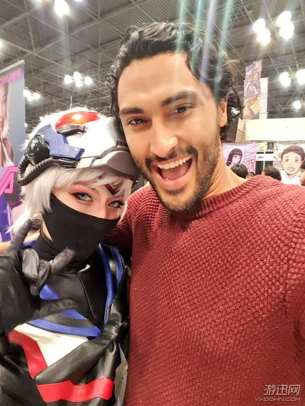 在现场,除了Shikarius的性转士兵76外,还有一位COSer装扮成性转死神与她合影,虽然服装非常女性化,但废萌的造型还是让人一眼就能认出来。另外,Shikarius还与卢西奥的英文配音演员JonnyCruzzz一起合了个影。