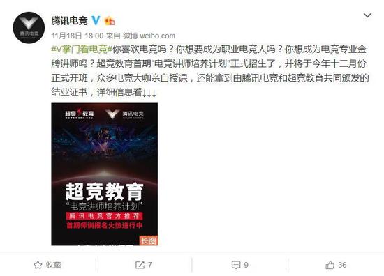 11月18日,腾讯电竞官方宣布超竞教育首期“电竞讲师培养计划”正式开始招生,并将于2017年12月份正式开班,参与培训计划的学员不但有机会成为职业电竞人,甚至还能成为一名真正的电子竞技专业金牌讲师。