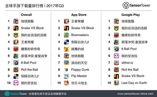 近日,移动应用数据分析公司Sensor Tower发布2017年Q3手游报告。根据报告,全球手游市场呈持续增长态势,第三季度全球手游综合下载量突破91亿次,同比增13%。在App Store全球手游下载排行榜中,猎豹移动揽三个席位,其中《钢琴块2》表现最突出,《跳舞的线》及《滚动的天空》同样成绩不俗。猎豹移动游戏业务正快速突破,全面打造爆款精品游戏。