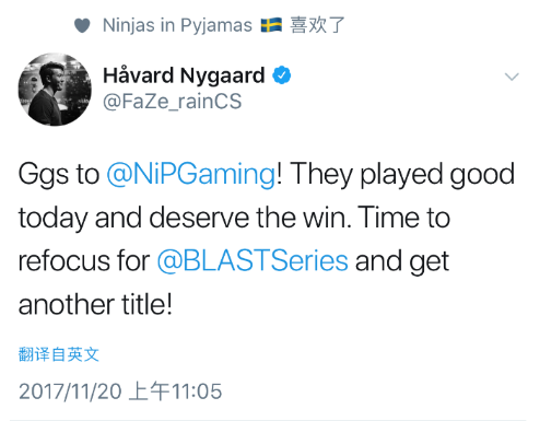 rain:GG NiP!他们今天的发挥值得这场胜利。是时候开始为BLAST系列赛做准备了!