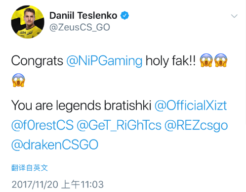 NiP再度夺得IEM奥克兰冠军在赛后,推特也热闹了起来。