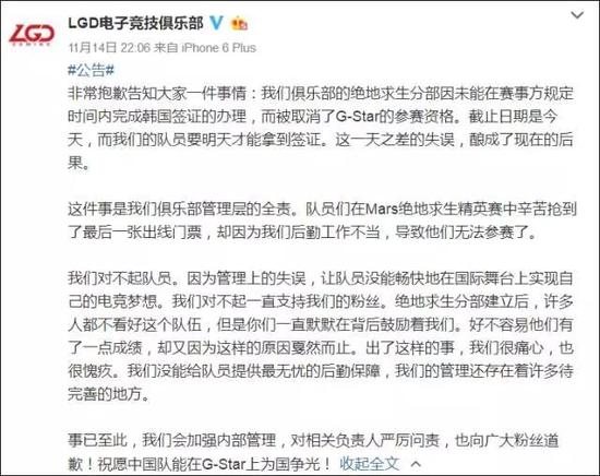 LGD也是因为签证的原因没能参加比赛,不过他们更像是由于后勤没有把控好签证时间,“一天之差的失误,酿成了现在的后果”。