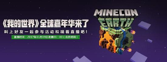 深受玩家喜爱的MINECON已于今年正式升级为全球嘉年华(MINECON EARTH),并将通过网络直播,把狂欢的气氛带到全世界的各个角落。自2010年首度举办以来,MINECON见证了《我的世界》玩家群体的不断壮大。重磅游戏更新发布、视频主与开发者分享、紧张刺激的各类玩家竞技、天马行空的Cosplay大赛……每年的MINECON都吸引了数以万计的《我的世界》爱好者齐聚一堂,共同庆祝这个属于所有玩家的盛大节日。