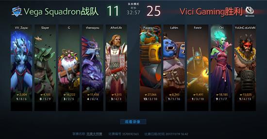 接下来VG的对手是Vega。首局比赛,VG早早在三路取得优势,一路稳步推进,轻取首局。第二局中,Vega通过积极的游走在前期打出优势,然而VG通过牵扯运营逐渐拉平了经济,在矮人直升机和死亡先知逐渐成型后掌握了场上局势,最后拿下比赛。