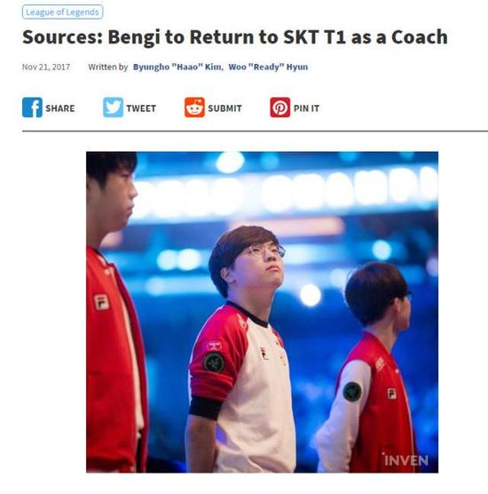 在文章中,Inven表示消息是来自多名职业选手的爆料。除此之外,Inven在文中表示虽然Bengi没有执教经验,但他对SKT队员们都非常熟悉。