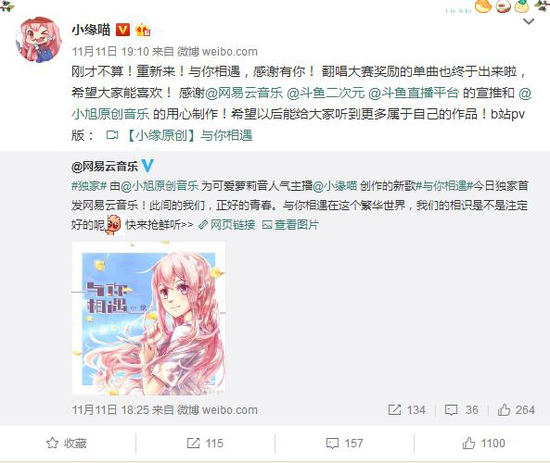 早些时候,小缘就发布了原创新歌单曲将出的消息,网友们的反应都是很激动,可以看出小缘露脸之后,人气不降反升的,也说明网友们对小缘的御姐萝莉音很喜欢!