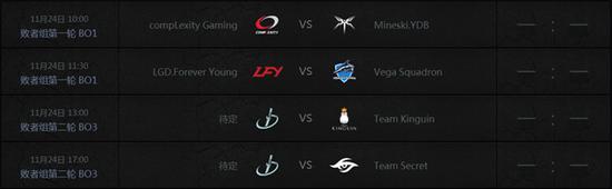 compLexity Gaming将在败者组首轮(BO1)对阵Mineski.YDB,LGD.Forever Young则要等待Vega Squadron的挑战,而Team Kinguin和Team Secret等待着之前两组对决的胜者。