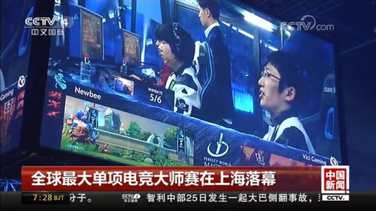 DOTA2赛事登上央视新闻已经不是新鲜事了,无论是国际邀请赛,还是亚洲邀请赛,都能成为报道的题材。本届完美大师赛,也再度登上中央电视台国际频道七点档的中国新闻,向所有观众展示着电子竞技顶级赛事的魅力。随着电子竞技越来越受到主流社会的认可,新闻报道中电子竞技的露面也越来越多,而作为主流电竞项目中成绩最好的DOTA2,就承担起了向社会传递电子竞技形象的重任。