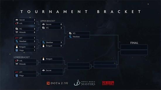 11月23日,完美大师赛主赛事进入到第二天,在当天的比赛中,Newbee与LFY展开一轮中国内战,Kinguin也和Vega展开一轮激战,之后,Newbee和Kinguin就一个胜者组决赛的名额展开了争夺。最终,Newbee赢下了这组对决,将与VG在胜者组决赛展开较量。