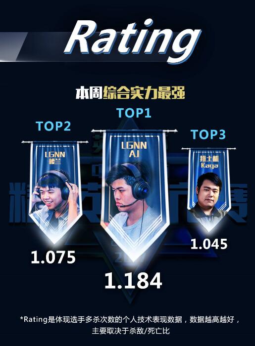 从衡量个人技术表现的Rating数值来看,LGNN和推土机拿到赛区冠军就非常科学了,Rating排名前三的选手都来自这两支队伍,不仅配合好,还各有大腿,怎么能不强呢!