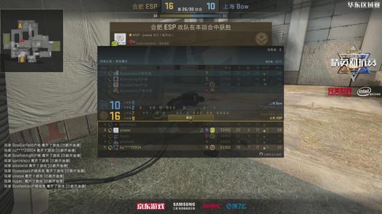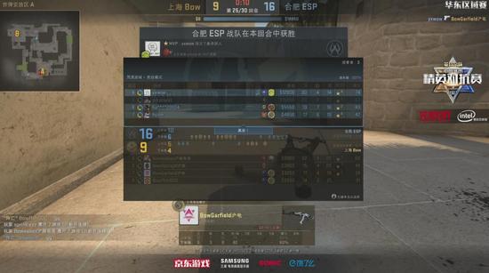 第二局上半场BOW先为CT阵营,ESP以中路骚扰慢打B的套路,但还是被BOW以1人阵亡拿下手枪局,随后BOW稳扎稳打连拿2分。ESP在短暂是失利后调整状态连续得分,在拿到经济优势后一直压制BOW,最终上半场ESP以10:5大比分领先。下半场的手枪局依旧是被BOW战队拿下,BOW再次稳扎稳打再次连夺两份。但是在枪法和战术还是略逊ESP一筹,ESP率先以15:9进入赛点,最终恭喜ESP以16:9拿下第二局荒漠的胜利,恭喜ESP以大比分2:0夺得华东区域赛的冠军,晋级全国总决赛。