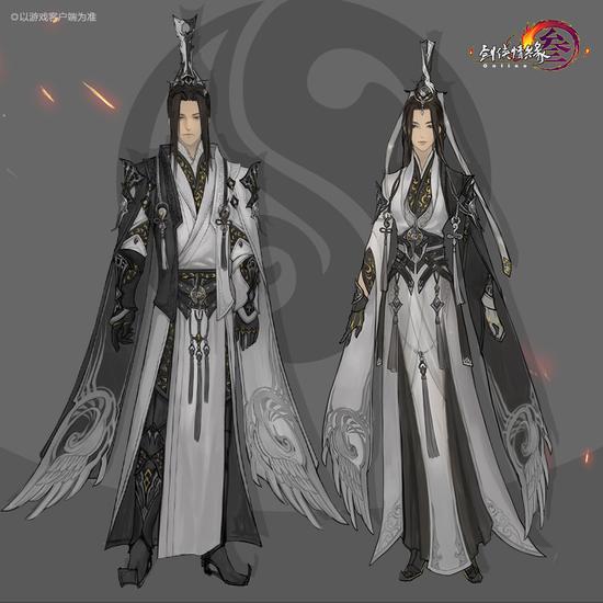 藏剑驰冥套延续了世家公子的经典设计,衣着得体,有大家风范。整体版型将礼服的款型与劲装结合,量体裁衣打造修身轮廓。
