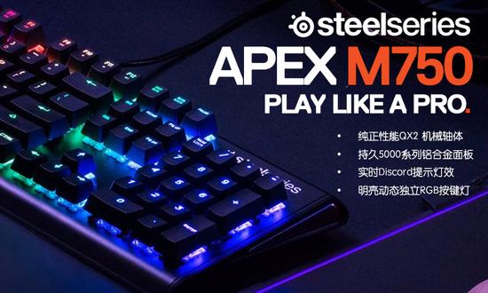 赛睿APEX M750机械键盘现已登录天猫赛睿官方旗舰店,首发价格1249元人民币,首发地址:https://steelseries.tmall.com/p/rd281179.htm