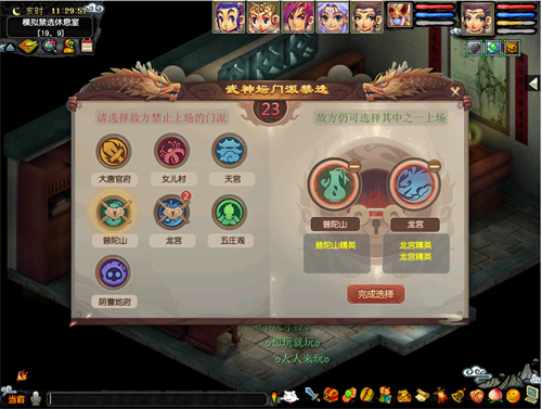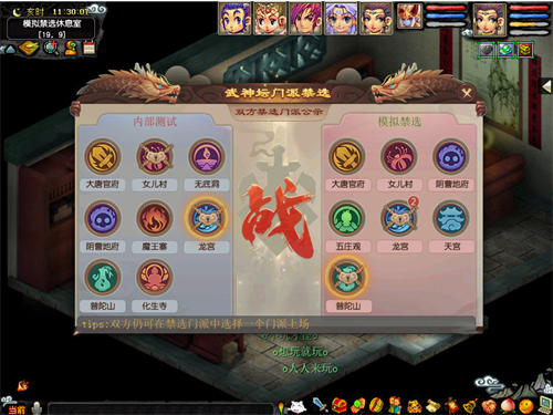 完成禁选后,将公布双方的禁选结果。此后,双方将有20~25分钟的时间,来参考禁选的结果调整自己的阵容。对方究竟会选择哪个门派上场?而己方又要如何跳出对方的禁选陷阱?一切只有在战斗开始时,才会大白于天下。