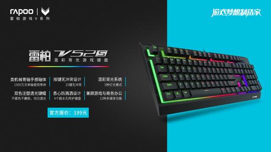 今日,老牌实力大厂,国产外设领军品牌——雷柏(RAPOO)为旗下游戏V系列造就199元类机械青轴的雅致战键——雷柏V52S混彩背光游戏键盘,类机械青轴手感的轴体,为玩家的每次敲击注入了真机械灵魂,灵动的清脆节奏感让玩家沉迷其中。多达12种多媒体功能,便捷的操控让玩家能时刻兼顾游戏与商务办公,5种混彩背光灯光模式重新定义新视界,手感,灯光,机械感样样都有,现已倾情上市。