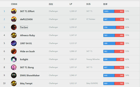近日,一位辅助玩家爬升到了英雄联盟韩服第一名。这名罕见的辅助韩服第一就是三冠王SKT新签入的练习生辅助Effort。