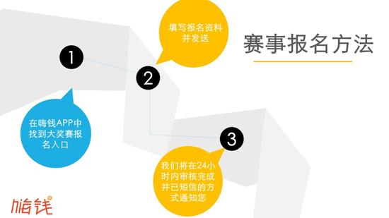 赛事活动期间邀请广大喜爱王者荣耀的嗨钱用户共同参与,活动流程:线上报名>分组线上比赛>线上小组赛冠军>小组冠军线下比赛>争夺冠亚军。活动奖励:总冠军(2万元)、亚军(8千元)、第三(3千元)、第四(3千元)、第五至第八(各1千元)。嗨钱网系上海亨元金融信息服务有限公司旗下品牌,是国内前沿的、专注互联网金融领域的为年轻群体提供全面金融解决方案的平台。